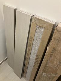 Solo ritiro a domicilio presso piano terra, regalo 24 piastrelle pavimento in ceramica Made in Italy (vedi foto con posa finale) effetto finto legno chiaro, 20x120cm ciascuna. Due scatole da 8, le altre sono senza confezione (vedi foto). In regalo anche 9 piastrelle dello zoccolino.