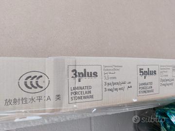 Vendo n°2 piastrelle in gres, effetto pietra, in confezione originale ed in perfette condizioni prodotte da Cotto D'Este. Le piastrelle sono in gres Kerlite Buxy, un materiale leggero, versatile e resistente grazie allo spessore ridotto (3,5mm) e al rinforzo della fibra di vetro. Dimensione di ogni piastrella: 100cm x 100cm. Spessore 3,5 mm Colore: Amande Le piastrelle sono adatte sia per pavimenti che per rivestimenti di pareti.