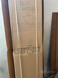 Piatto nuovo e cabina in vetro curvato ancora imballata per inutilizzo in corso di ristrutturazione