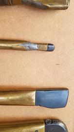 Attrezzi anni 50 per modellare materiali morbidi, pellame o lastre metalliche sottili. La particolarità è che l’inseto di punta non è in metallo come solito ma in resina o pietra dura. Nelle foto sono ben raffigurate le diverse tipologie degli inserti di punta. Per appassionati di bricolage e fai da te sono indicati nelle operazioni di doratura per l’applicazione delle lamine sottili. Solo consegna a mano con appuntamento concordato. Non si spedisce