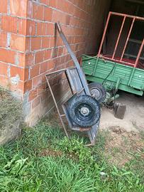Piccolo carretto da giardino dimensioni: 100 per 130 cm. Robusto con pianale in assito.