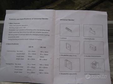 Piegatrice a mano vendo per inutilizzo, nuova mai usata, completa di accessori.