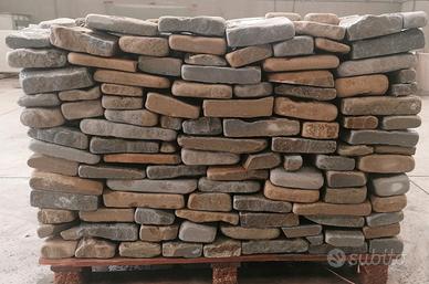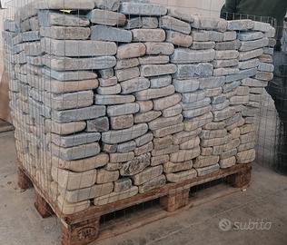 Pietra di Gorgoglione anticata per rivestimenti o realizzazione di muri, spessore cm. 4/7, di forma squadrata di varie dimensioni, disponibile su pedane ad un prezzo di € 31/mq. Quantità disponibile pronta consegna n. 5 pedane pari a mq. 110 per un totale di ql. 115, pedane vendibili anche singolarmente, per quantitativi superiori su prenotazione.