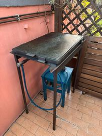 Pietra ollare da 60 x 40 cm, removibile con suppporto a 4 gambe di metallo con alimentazione a gas. Milano zona Sarpi. Ritiro in loco.