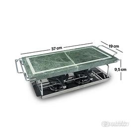Griglia da tavolo in pietra ollare con dimensione pari a 37x19 e spessore della pietra di 2 cm cm, completo di 2 bruciatori a pasta combustibile, supporto e vassoio, ideale per una cottura perfetta sia di carne che di pesce. Il prodotto può essere posizionato a tavola durante una cena con gli amici così da decidere la cottura preferita degli alimenti.