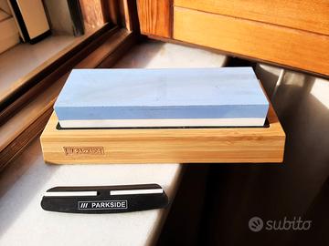 Pietra per Affilare Parkside 2-in-1 Grana 1000/6000, Affilacoltelli Professionale con Base in legno Antiscivolo e Guida all'Angolo-