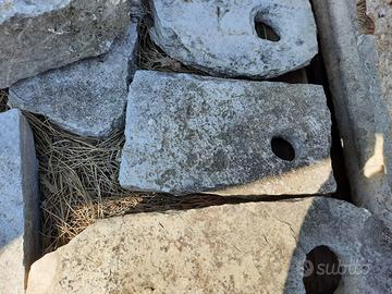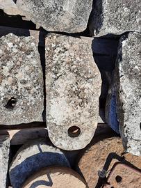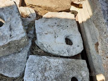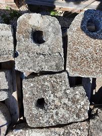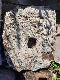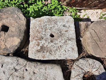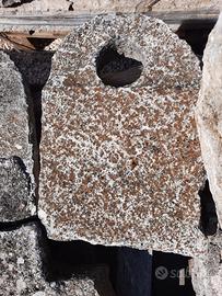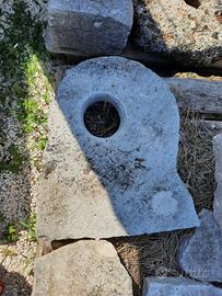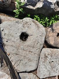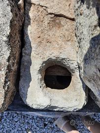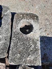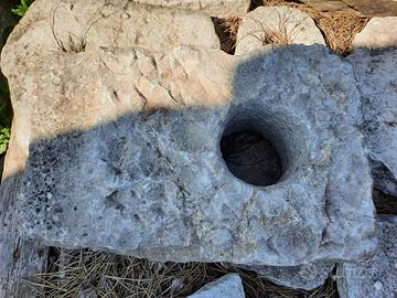 24 e 25: Pietra di raccordo ed incanalamento acque, con foro di entrata ed uscita (cm 35x55x h 20).