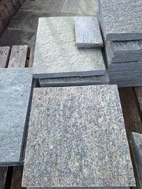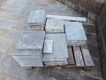 Pietre luserna di colore misto di varie dimensioni come da foto. Di seguito le dimensioni: - 3 pietre 30x30cm - 6 pietre 30x35cm - 28 pietre 30x40cm - 1 pietra 30x45cm - alcuni pezzi vari.