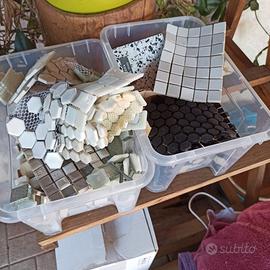 quantità abbastanza importante di pietruzze/vetri ceramica e materiale simile (colori vari) per la composizione di mosaici o similari adatte a chi ha questo hobby o per chi vuole iniziare sperimentazioni di questo tipo
