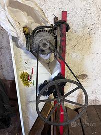Macchinario per tritare uva, pigiatrice. Modificato e reso elettrico a motore, perfettamente funzionante in ottime condizioni. Si trova a lanuvio visibe per qualsiasi prova!