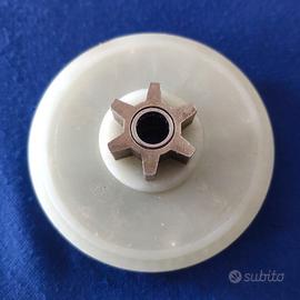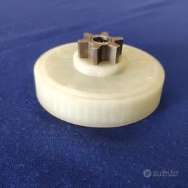 Vendo pignone di trasmissione per motosega elettrica dotato di ingranaggio interno in robusto ABS facile da installare e ruota dentata in acciaio da collegare alla catena. Articolo nuovo