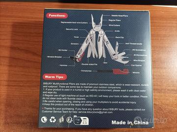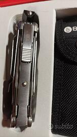 Multifunzione 22 in 1 in Acciaio Inox stile Leatherman Wave con pinza, martelletto, acciarino, lima, fischietto, cacciaviti, apriscatole, righello, forbici, spelafili, porta inserti, ecc. per info piu dettagliate vedi foto del retro della scatola Nuovo, mai usato, senza danni o imperfezioni.