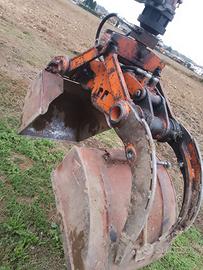 Pinza apertura 1,60 usata in buone condizioni completa di rotore 360. Tubi quasi nuovi, pistone senza perdite e perfettamente funzionante. Assieme si danno anche due semi benne come in foto si possono montare velocemente per scavo o caricare rami foglie ecc. Molto resistenti. Ancora montata si possono provare. Possibilità di trasporto in zona. PS c'è già staffa di collegamento tra rotore e bracci caricatore, in più mi sembra che ne una staffa di collegamento anche per caricare sva.