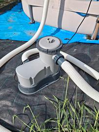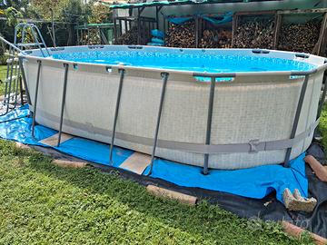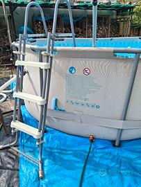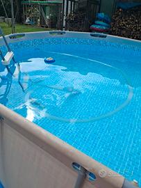 cedo piscina utilizzata 2 anni, sempre riposta in inverno , con 2 motori di filtraggio, 1 originale ed uno nuovo piu potente, scaletta, attrezzi per pulizia, pastiglie e liquido floccante per mantenimento pulizia acqua, telo di copertura