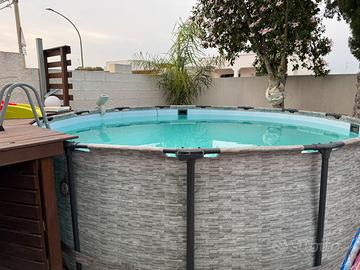 Vendo piscina usata 2 stagioni tenuta bene. Qualche tubolare lievemente arrugginito. Cedo inoltre struttura di un’altra piscina uguale in modo da sostituire qualche tubolare arrugginitocompresa di pompa a sabbia 8000l/h