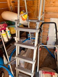 Vendo come da titolo piscina autoportante lunga 4,20 mt, larga 2,20 mt, alta 1,10 mt. Vendo completa di pompa filtrante a sabbia capace di girare 13,000L/H quindi in un oretta gira completamente l acqua della piscina. Cedo anche: scaletta per piscine bestway Aspiratore fondo Gre Regolatori di ph -/+ Cloro multiazione in pastiglie Skimmer Vendo la piscina per inutilizzo e mancanza di tempo da dedicargli, no perditempo. La piscina non ha mai subito uno squarcio o fori, no toppe. Telo originale e integro.