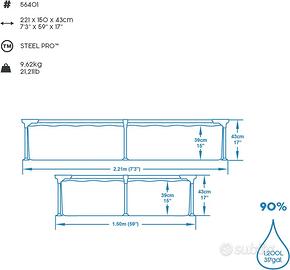 Piscina Steel Pro™ Rettangolare 2.21m x 1.50m x 43cm water capacity (90%)1,200L (317gal.)