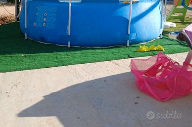 Vendo piscina bestway 3,60 x 75 con qualche foro come da foto riparato con silicone, funzionante, per passaggio a piscina più grande. A parte c'è il telo di copertura al costo di 20€. Ritiro a mano su Sammichele di bari