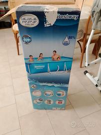 Piscina 3x2 h60 per passaggio a piscina più grande nella confezione c'è anche la pompa filtro originale quindi si può utilizzare da subito, ha un Micro foro ma bastano le toppe in commercio che resistono per tutta la stagione(alcune avanzate vedi foto sono nella confezione).