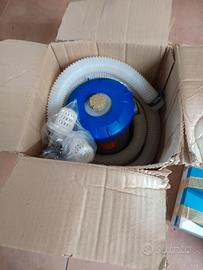 Vendo piscina fuori terra modello Fast Set (quella con anello gonfiabile), diametro 3 metri. Comoda e veloce da montare. Incluso: Liner (telo), pompa filtro/depuratore e tubi originali. Stato: Riposta in cantina da qualche stagione. Il materiale è integro, non presenta tagli. Nota: Essendo rimasta ferma, necessita di una passata con acqua e sapone una volta gonfiata. Prezzo: 30€ Ritiro a mano a Viserba (RN) Se di interesse ho anche un trampolino (senza rete di protezione) diam. 3 metri. Se presi entrambi € 50.