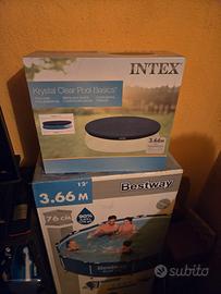 Piscina marca best way ancora imballata mai utilizzata con copripiscina rete e cloro. Costo spedizione 30 euro. Possibilità di ritirarla a Volpedo (AL)