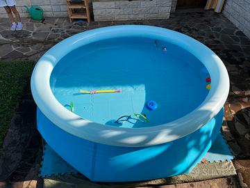 Vendo piscina marca bestway tonda da 2,4 metri- 240 cm Completa di tappi, istruzioni, toppa per eventuali buchi ed istruzioni; non manca nulla. Si vende anche telone nero bestway per la copertura con spago e fermo