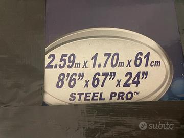 Piscina Powersteel 2,59x1,70x61cm con pompa a filtro e attrezzi. Utilizzata solo un anno. Perfetta per il giardino e il divertimento dei bambini.