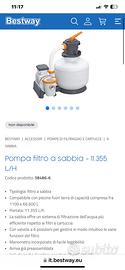 Vendo Piscina bestway 366x122 circolare blu completa, usata pochissimo con ricambio piscina imballato, pompa di filtraggio bestway a sabbia e sfere Portata: 11.355 L/h, Con valvola a 6 posizioni. Vendo causa inutilizzo.