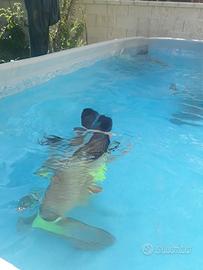 piscina bestway dimensioni 4,04 x 2,01 x 1,00 m comprensiva di scaletta, pompa con filtro con vari tubi, telo di copertura, teli prato finto per sottopiscina e skimmer.