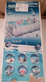 Piscina bestway 4,04 x2, 01x 1 mt con filtro sabbia bestway 5678 l/h accessori inclusi (aspiratore, skimmer, dosatore, nonché filtro originale) e prodotti per la manutenzione (antialga, cloro) per un complessivo di 280 euro.