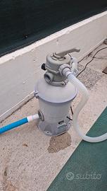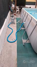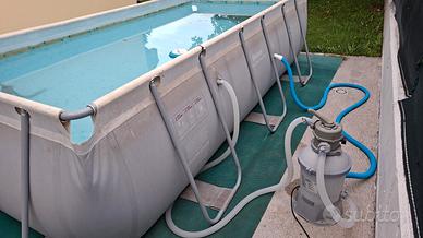 Vendo piscina BESTWAY 4x2x1 m in discrete condizioni con filtro a sabbia e scaletta, confezione originale, sempre smontata e pulita a fine estate e riposta in ricovero asciutto. Attualmente ancora montata e ferma da 2 settimane per ferie. Visionabile presso il mio domicilio dopo accordi. Tappeti in gomma sotto piscina non in vendita. Nessuna perdita e mai riparata, unica cosa, il tubo bianco di mandata acqua comincia a creparsi e di conseguenza zampilla, andrebbe sostituito nella prossima stagione Peso totale sui 50 kg. Vendo per passaggio a piscina più grande.
