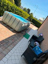 Vendiamo piscina Bestway, acquistata nuova nel 2020, usata 3 stagioni. Misure 400x200x100. Non ci sono fori, tenuta molto bene. Compresa di filtro a sabbia Bestway e scala tenuta perfettamente.