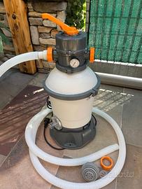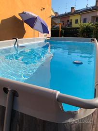Vendo piscina fuori terra marca Bestway usata pochissimo, in ottime condizioni. Struttura stabile con telaio in metallo e telo resistente, perfetta per l’estate in giardino. Dotata di accessori originali: - Scaletta interna/esterna - Doppio motore (filtro a sabbia di serie + secondo motore aggiunto per dare maggiore tiraggio) - Skimmer - Telo copri piscina - Aspiratore manuale per pulizia del fondo Caratteristiche principali: Dimensioni: 412x201x122 cm Struttura robusta con telaio in metallo Telo in PVC resistente Montaggio semplice e veloce Ideale per famiglie