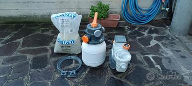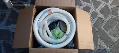 Vendo piscina fuori terra Bestway Power Steel Frame dimensioni 412x201x122 cm, completa di impianto filtro a sabbia e accessori. Inclusi: * Filtro a sabbia Bestway Flowclear (5678 l/h) * Pompa e tubazioni * Scaletta * Telo copertura * Sacchetto a metà di sabbia di vetro * Kit accessori pulizia e manutenzione (retino, aspiratore, raccordi, ecc.) * Prodotti per la manutenzione dell'acqua (cloro, PH+, PH-, ecc.) Dimensioni: 412 x 201 x 122 cm Condizioni: * Piscina funzionante * Manca una guarnizione in gomma nel tubo del filtro (facilmente reperibile da OBI o realizzabile fai-da-te) * Presenti alcuni piccoli fori già riparati * Fondo parzialmente scolorito a causa del cloro e prodotti per il trattamento acqua Struttura solida e completa di tutto il necessario per l’utilizzo. Prezzo: 200€ trattabili Già smontata. Solo ritiro a mano