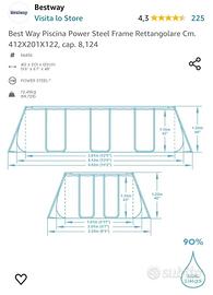 Vendo piscina Bestway acquistata nel giugno 2023 come nuova avendola usata una sola stagione,vendo causa trasloco in un altra casa!incluso di copertura acquistata a parte!in perfette condizioni!misure 412x201x122