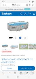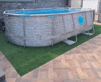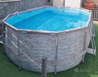 Vendo, per passaggio a categoria superiore ed immediato realizzo, bellissima piscina ovale di metri 5x3, utilizzata solo per due stagioni, montata a Giugno, smontata primi di Settembre e riposta nel suo scatolo originale, Ottime condizioni generali, nessuna perdita e nessuna riparazione. Completa di pompa filtro a sabbia da 3.596 litri orari (solo il filtro a sabbia ha un valore commerciale di 130,00 €). Già smontata e nel suo scatolo pronta per il trasporto. Per altre info contattatemi. Lapiscina fuori terra Bestway ha le seguenti misure: 488 cm di lunghezza, 305 cm di larghezza e una altezza di 107 cm (ingombro totale del prodotto montato 488x347x107 cm) . Rivestimento in materiale Tritech a tre strati rinforzato per garantire resistenza superiore a strappi, forature e raggi UV, conferendo alla piscina un’affidabilità superiore nel tempo. Le finestre rinforzate integrate nelle pareti laterali permettono di osservare l’interno della piscina, favorendo un controllo visivo ottimale, soprattutto per famiglie con bambini Finestre Splashview: oblò trasparenti integrati nel liner consentono un’esperienza visiva esterna unica. Pompa con filtro a sabbia: assicura un’efficace circolazione e purificazione dell’acqua con manutenzione ridotta. Completa di scaletta e telo di copertura. Lo stesso modello attualmente di piscina è venduto sul sito bestway a 769,00 € come da foto allegata all'annuncio. per ulteriori info contattatemi, prezzo leggermente trattabile.
