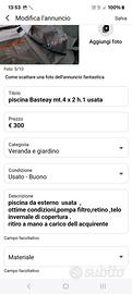 Piscina bestway 4 mtx2mt altezza 1 mt usata una estate