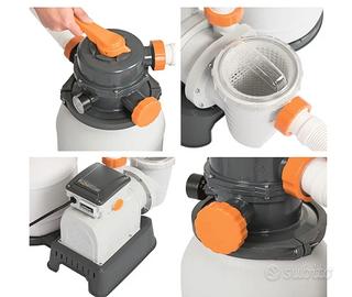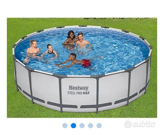 piscinP Bestway 56438-5 Set Piscina Fuori Terra Steel MAX Rotonda usata 1 stagione diametro 4.57 h 1.22 a corredo scaletta e filtro sabbia a sabbia flowclear Bestway 58499-2 Pompa Di Filtraggio A Sabbia Da 8.327 L/H,