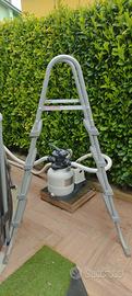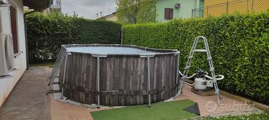 Vendo piscina Bestway Dimensioni: 6,10 m x 3,66 m x 1,22 m causa trasferimento. Utilizzata solo per due estati, praticamente nuova senza alcun difetto. Nel prezzo è compresa la scaletta, due pompe di filtraggio dell'acqua (una a sabbia ed una a filtri).