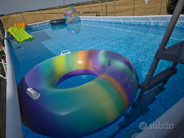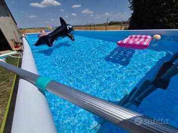 Vendo piscina Bestway acquista a fine giugno 2025, usata massimo tre mesi e poi messa via in maniera maniacale. Insieme alla piscina vendiamo: . filtro a sabbia e scaletta (che erano già compresi nell’acquisto della piscina) . Skimmer, galleggiante porta cloro con misuratore di temperatura e retino per la pulizia . Prodotti per il mantenimento (sabbia per il filtro, pastiglie di cloro e liquidi per il ph e anti alga) . Robottino automatico per la pulizia della piscina . Gonfiabili che si vedono in foto Prezzo trattabile!