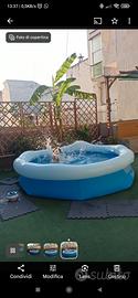 Vendo piscina completa di filtro rete per rimuovere gli insetti e copri piscina, presenta dei rigonfiamento sulla parte che si gonfia come visibile nella foto, che non impattano sul suo utilizzo.