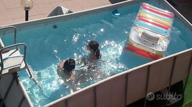 Vendo piscina in ottimo stato per inutilizzo completa di tutti gli accessori (porta cloro - retino e termometro anche la scopa per rimuovere lo sporco sul fondo) compreso nel prezzo vendo anche la pompa e le palline di fibra x pulizia acqua. Dimensioni 4,12 m X 2,01 m x 1,22 mm Ritiro a mano o spedizione a vostro carico.