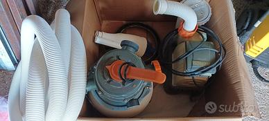 Piscina completa di pompa professionale, kit per pulizia completa con attrezzi e prodotti specifici, usata pochissimo, regalo tappetino verde sintetico 16mq. ritiro in loco, non spedisco. per altre info e foto contattatemi in privato.