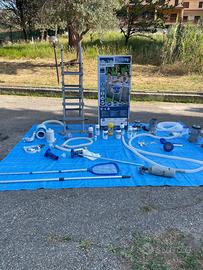 Completa di scaletta-trampolino, pompa elettrica per pulizia fondale, filtro per drenaggio, bocchettone per riempimento e svuotamento. Sono compresi i prodotti chimici per il trattamento dell’acqua, strumentazione per misurazioni pH e racchette per pulizia dell’acqua. Ritiro e spese a cura dell’acquirente.