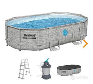 Piscina Bestway ovale, colore grigio effetto pietra.