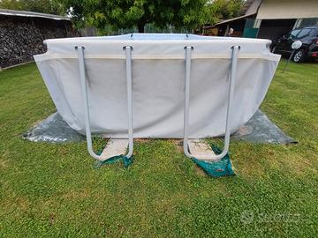 Dimensioni: 5,49 m x 2,74 m x 1,22 Robusta struttura in acciaio, con telo a tre strati rinforzato aontro strappi e forature, per garantire tenuta e durevolezza Montaggio fai da te senza bisogno di attrezzi Include sistema di trattamento dell'acqua con pompa di filtraggio a sabbia prezzo trattabile