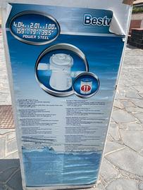 Vendo piscina fuori terra Bestway Power Steel . Si tratta di un modello rettangolare con struttura in acciaio. Le dimensioni sono 4,04 metri di lunghezza, 2,01 metri di larghezza e 1 metro di altezza, perfette per divertirsi in famiglia o con amici. La capacità d’acqua è di 6.478 litri (al 90%), sufficiente per garantire un bagno rinfrescante anche nelle giornate più calde.