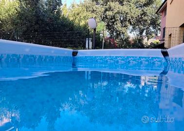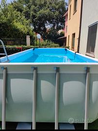 Vendo bellissima piscina Bestway Power steel 4,90 MT x 2,95 MT x 1,28 MT completa di tutto il corredo , scaletta per entrare ed uscire, skimmer per ripulire superficie, retini, telo per copertura totale pompa da 2000 l ora in dotazione e pompa a sabbia comprata separatamente dal costo di 220 euro . Strumento per pulizia fondo piscina . Visionabile ancora montata . Accessoriata di tutto e di più .no perditempo .
