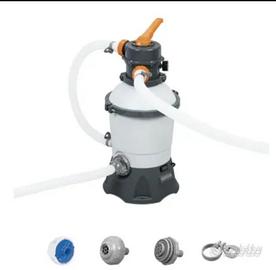 Vendo piscina tonda bestway, in ottime condizioni, diametro 3.66 mt h. 76 cm con pompa di serie nuova + pompa con filtro a sabbia, telo compri piscina, rete per rimuovere sporco superficiale e aspiratore per sporco sul fondo. Tutto marca bestway. Usata per due stagioni solo per il periodo estivo. Adatta per bambini fino a 6/8 anni.