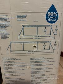 PISCINA RETTANGOLARE 3m x 2m H 66 cm (H max acqua= 59 cm) usata 1 stagione completamente funzionante e completa di motore, pompa, tubazioni, supporti regalo separatamente telo di copertrua acquistato separatamente. La piscina presenta un unico foro piccolo (a circa 12 cm dal bordo superiore) dal quale può travilare acqua...riparabile in pochi minuti a piscina piena con apposita toppa.
